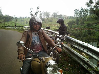 We were now crossing over to our "State 2 and Forrest 1" . We rode slow in the hope of sighting some animals, atleast some elephants but no such luck. Usually on my previous visits to any of the forests, 'Posers' , the deers and monkeys were so easily sighted in large groups , so many that one would literally get bored of them. but today not even them, it was strange and disappointing, then Anoop mentioned that it could be because it rained the previous night and the animals would not have ventured near the road. In absence of any better reason, it sounded very convincing. So we rode on and finally reached Sultan Bathery around afternoon. Anoop and Pratap were to leave for Calicut from there whereas the 3 of us (Amit, Sharath and Me) had to decide if to stay and explore the place or move on. Amit Suggested we ride on and decide later and thats what we did. The plan to take an alternate route and not the one we took while reaching Sultan Bathery.So we bid farewell to Anoop and Pratap and rode towards Gudalur, Tamilnadu and that was our "3rd state and the ride through coffee estates".